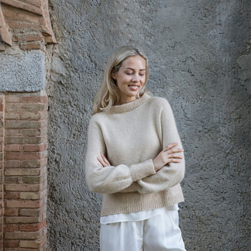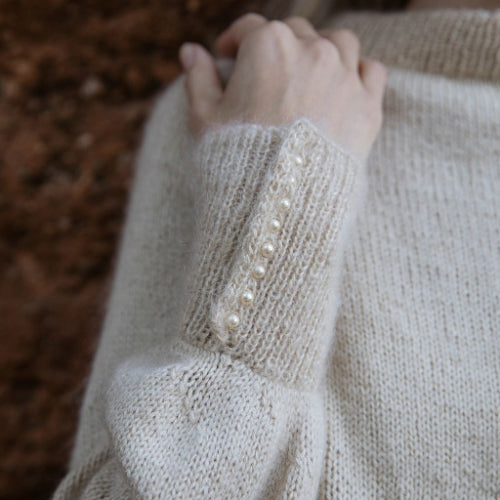 "Gardenias, one of my favourite tropical flowers, inspired this sweater. Their thick white petals and intoxicating fragrance are beautifully captured in both nature and various songs. A special memory is tied to the song “Luna de Xelajú,” which speaks of a moonlit serenade and evokes the essence of gardenias. This piece reflects the timeless beauty and elegance of the flower, making it a classic addition to any wardrobe. " - Claudia Q.